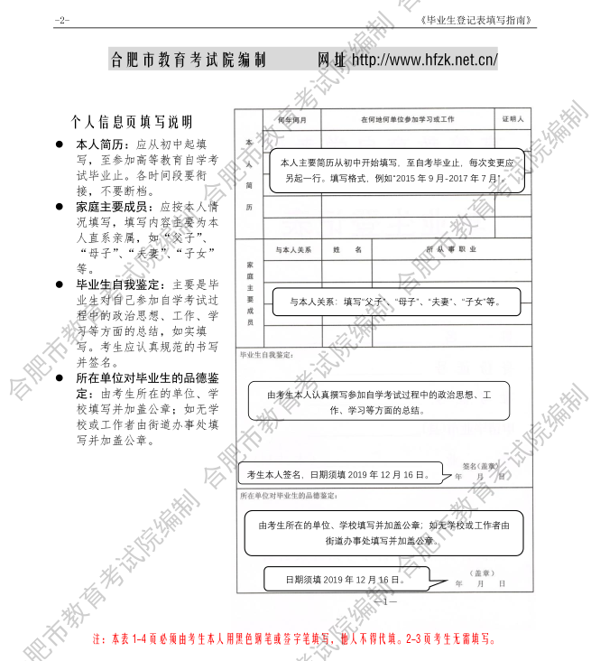 2020年合肥自考上半年毕业生登记表填写