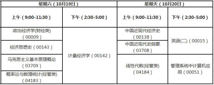 合肥的经济学自考时间及考试科目安排已经出来了,见下表: