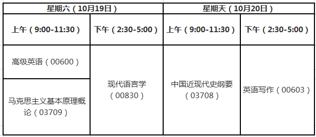 小编给大家整理了2019年10月合肥地区英语本科的考试安排: